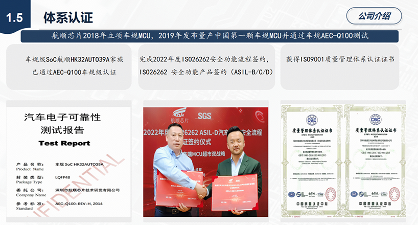 航顺车规HK32AUTO39A家族于2018年立项布局,2019年量产,通过三年的市场推广和汽车市场生态建设,被众多汽车前装整车厂和Tier1采用。”