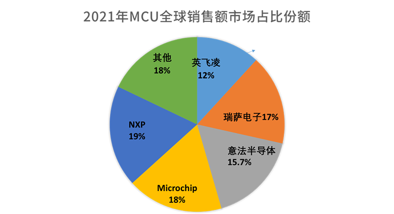 作为车辆控制的核心器件,MCU主要用于车身控制、驾驶控制、信息娱乐和驾驶辅助系统。汽车MCU是一个相对成熟的市场,竞争格局比较稳定。恩智浦、英飞凌、瑞萨、意法半导体和德州仪器长期以来一直占据全球汽车MCU市场的前五名,2021年市场占比超过82%。